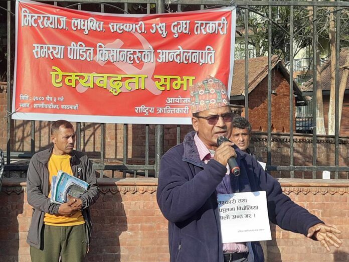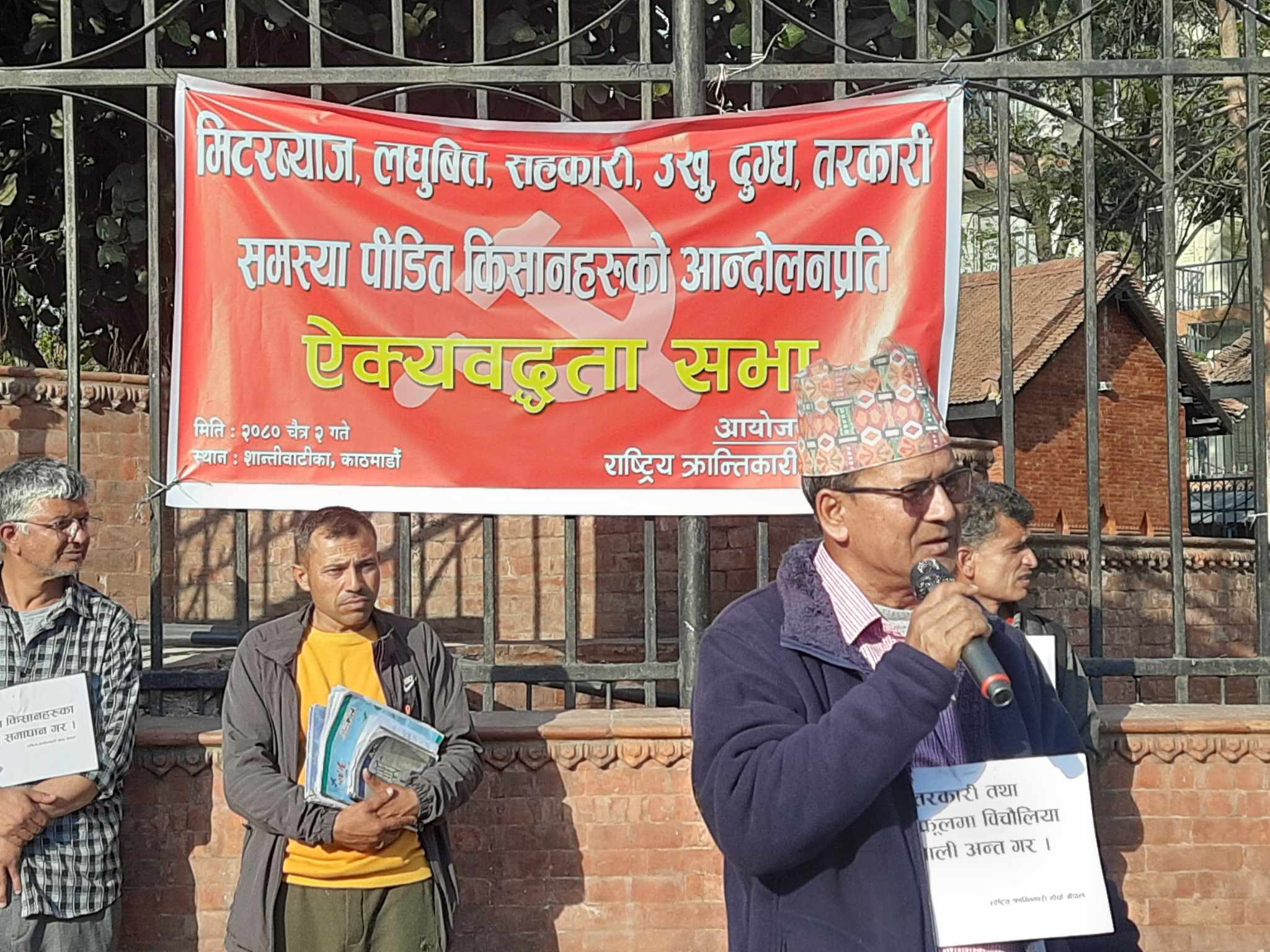 सरकार नै किसानमारा रहेको भन्दै किसानहरुले दुध, उखु, तरकारी जस्ता उत्पादनको झुक्तानी प्राप्त गर्न नसकेको बताए । सरकारले आयातित तरकारी दुधजन्य पदार्थलाई रोक्न नसक्दा किसानहरुको उत्पादन बिक्री हुन नसकेको, त्यसको रोक लगाउनको लागि निरन्तर खबरदारीको आवश्यकता रहेको कुरा उल्लेख गरे । वक्ताहरुले गाउँगाउँमा किसानमारा साहु महाजन रहेको सरकार पनि तिनै साहु महाजनको भएकाकारण किसानका समस्याप्रति सरकारले बेवास्ता गरेको बताए । किसानहरु, लघुवित्त पीडित, सहकारी पीडित उत्पादनमा सक्रिय किसानहरुले अधिकार प्राप्तिको लागि समस्या समाधानको लागि ठूलो खबरदारी र संघर्षको आवश्यकतामा जोड दिए । ऐक्यबद्धता कार्यक्रमको संचालन पुस्कर गौतमले गरेका थिए । देशमा केही समय यतादेखि सहकारी पीडित किसानहरु लघुवित्त पीडित, दुग्ध किसानहरु निरन्तर संघर्षमा रहेका छन् ।