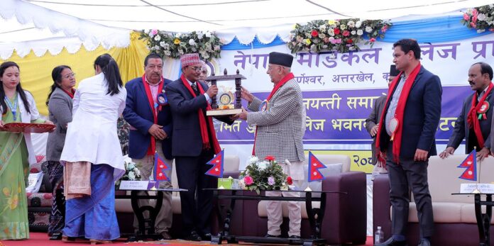काठमाडौं । नेपाल मेडिकल कलेजको रजत जयन्ती समारोह प्रधानमन्त्रीको प्रमुख आतिथ्यतामा २०८१ फागुन १३ गते सम्पन्न भएकोे छ । रजत जयन्तीमा स्वास्थ्यमन्त्री प्रदीप पौडेलको पनि आतिथ्यता रहेको थियो। कलेजले आम सर्वसाधारणलाई सहज र सर्वसुलभ रुपमा गुणस्तरीय स्वास्थ्य सेवा प्रदान गर्दै आइरहेकोमा प्रधानमन्त्री केपी शर्मा ओलीले प्रशंसा गर्नुभएको छ कलेजको रजत जयन्ती समारोह तथा नवनिर्मित डेण्टल भवनको उद्घाटन कार्यक्रममा बोल्दै प्रधानमन्त्री ओलीले नेपाल सरकारका विभिन्न निकायबाट प्रदान गरिएका स्वास्थ्य बीमा कार्यक्रमसँगै गोकर्णेश्वर नगरपालिकासँग सहकार्य गरेर कलेजले प्रदान गर्दै आइरहेका स्वास्थ्य कार्यक्रमबाट गरिब, विपन्न तथा आम सर्वसाधारण नागरिकहरु लाभान्वित भएकोमा प्रशंसा गर्नुभएको हो ।