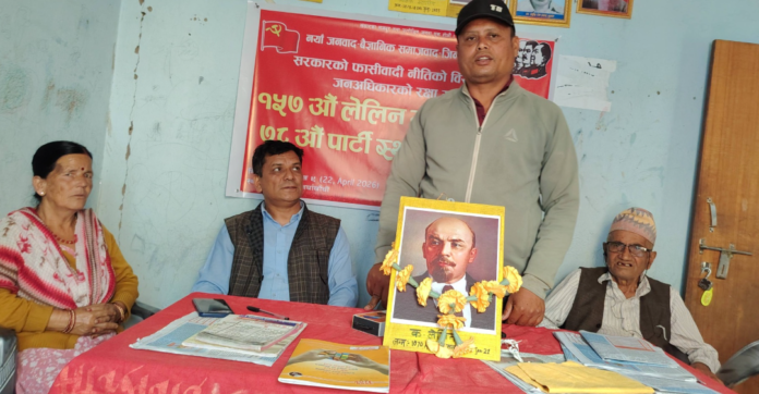 सन्धिखर्क । अर्घाखाँचीमा १५७औं लेनिन जन्म जयन्ती र ७८औं नेपालको कम्युनिस्ट पार्टीको स्थापना दिवस सम्पन्न भएको छ । कार्यक्रममा ५ नम्बर ब्यूरो सचिव जितामित्र सुनार प्रमुख अतिथि हुनुहुन्थ्यो । पार्टीका केन्द्रीय सल्लाहकार समिति सदस्य पिताम्बर भट्टराई, क्रान्तिकारी महिला संगठनको केन्द्रीय सदस्य सिता भट्टराईले पनि सम्बोधन गर्नु भएको थियो। कार्यक्रमको सञ्चालन खेमराज भट्टराई र अध्यक्षता जिल्ला सचिव राजेन्द्र नेपाली गर्नु भएको थियो।